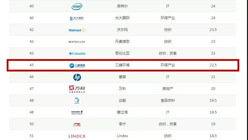 近日,三峰環(huán)境憑借在環(huán)境管理、環(huán)境信息披露、可持續(xù)發(fā)展等方面的出色表現(xiàn),首次入榜綠色供應(yīng)鏈CITI指數(shù),與蘋果、耐克、華為、微軟、可口可樂、宜家、豐田汽車、家樂福等著名跨國集團共同榮登品牌排名50強,位列全行業(yè)排名第45位,環(huán)保行業(yè)第2位。