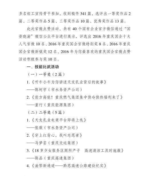 重慶國資網(wǎng)絡(luò)新聞寫作比武活動(dòng)獲獎(jiǎng)情況通報(bào)